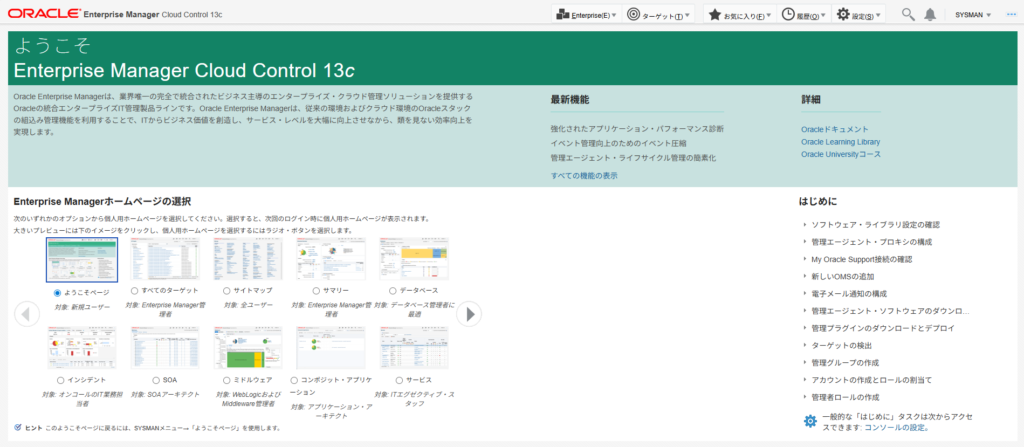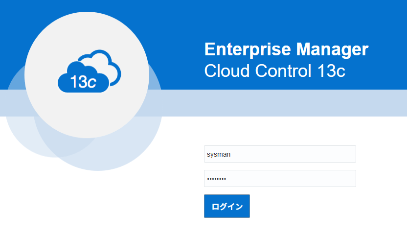 SYSMAN/<インストール時に指定したパスワード入力 (例:welcome1)>